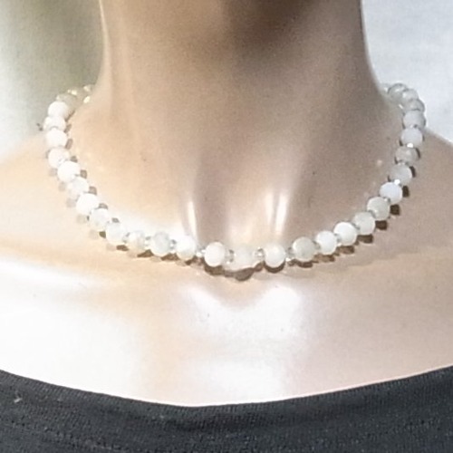 乳白色のガラスビーズネックレス アクセサリーのセール通販 9726N
