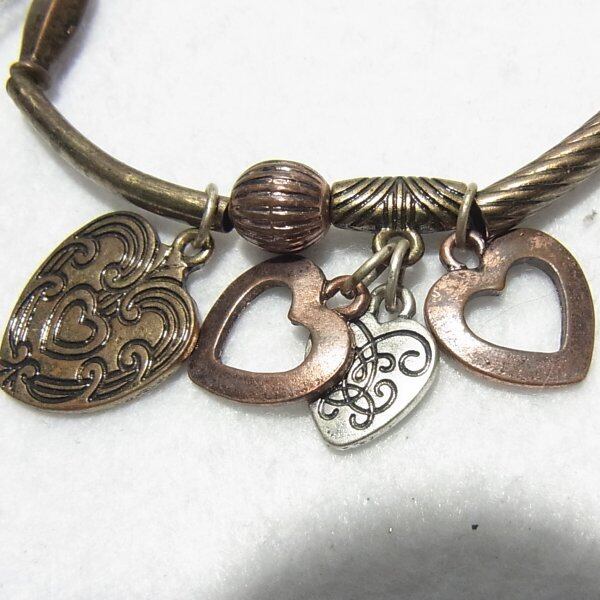 ●オールドストック新品 ●ブロンズカラーメタルのストレッチブレスレット ハートのチャーム ゴムひもでストレッチします ★送料は一律250円、4000円以上お買い上げで無料です。
