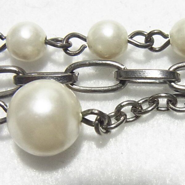 ●黒メタルチェーンとパール風ビーズのの3連ネックレス