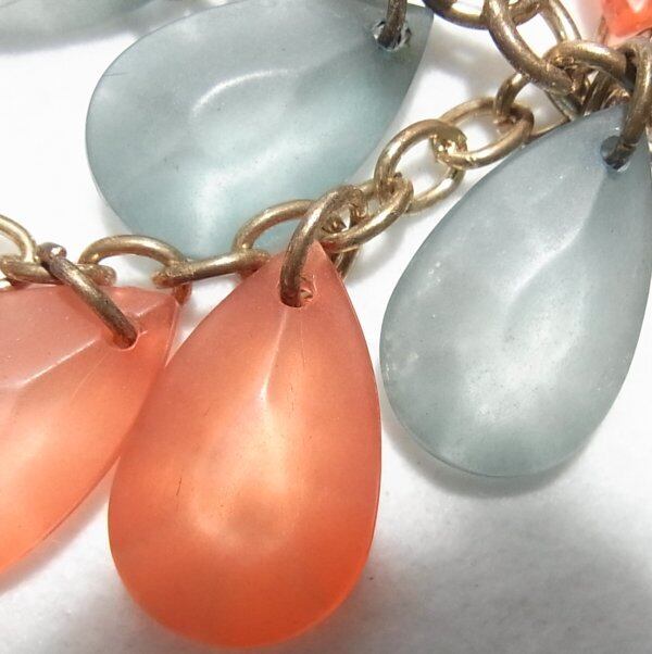 朱色・水色のティアドロップがジャラジャラ下がるビブネックレス アクセサリーのセール通販 10777N