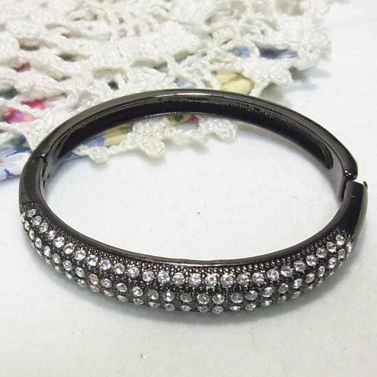 ●オールドストック新品 ●黒いクランパーブレスレット 黒いエナメルペイントのメタル クリアなラインストーン 上品でオシャレなアイテムです。 ★送料は一律250円、4000円以上お買い上げで無料です。
