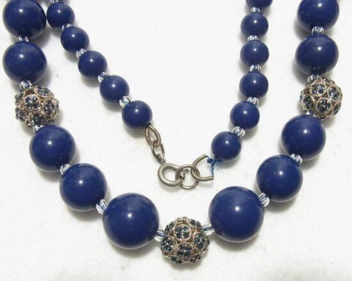 ダークブルーのビーズ製ロングネックレス ヴィンテージネックレスのセール通販 10290N