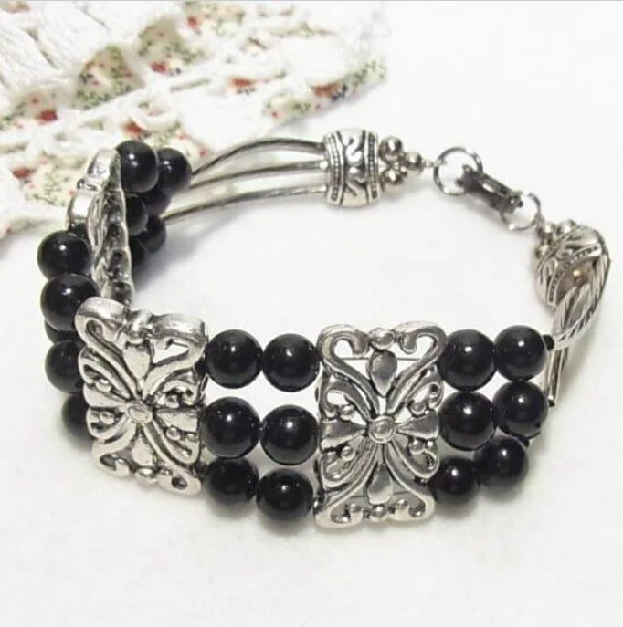 黒ビーズの幅広ブレスレット コスチュームジュエリーのセール通販 10350BR
