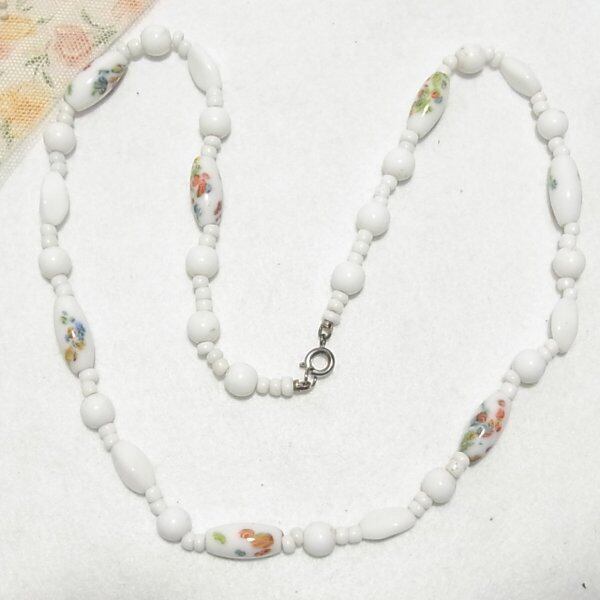 模様入りミルクガラスのネックレス ヴィンテージネックレスのセール通販 10370BR