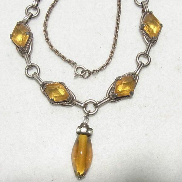 シトリンブラウンの石のYネックレス ヴィンテージネックレスのセール通販 10429N