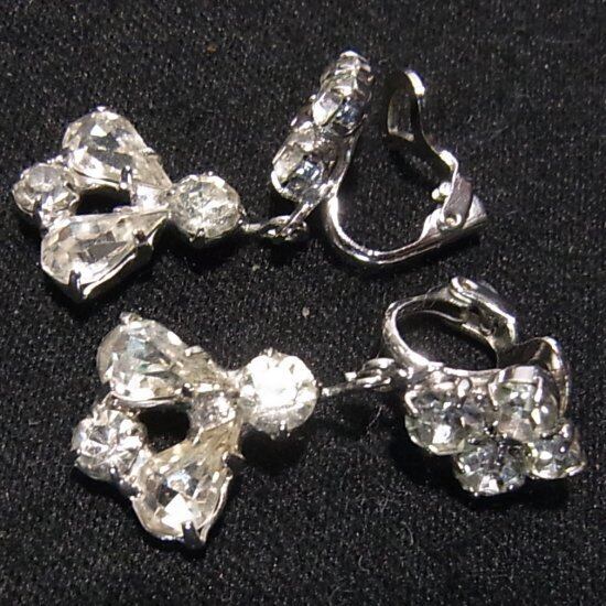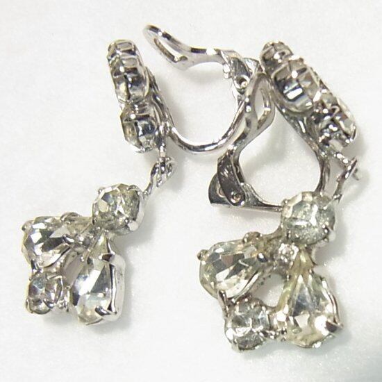 ●オールドストック新品 ●プレス式 ●クリアなラインストーンの下がるイヤリング 石は爪留め 銀色メタル 気品ある清楚なアイテムです ★送料は一律250円、4000円以上お買い上げで無料です。