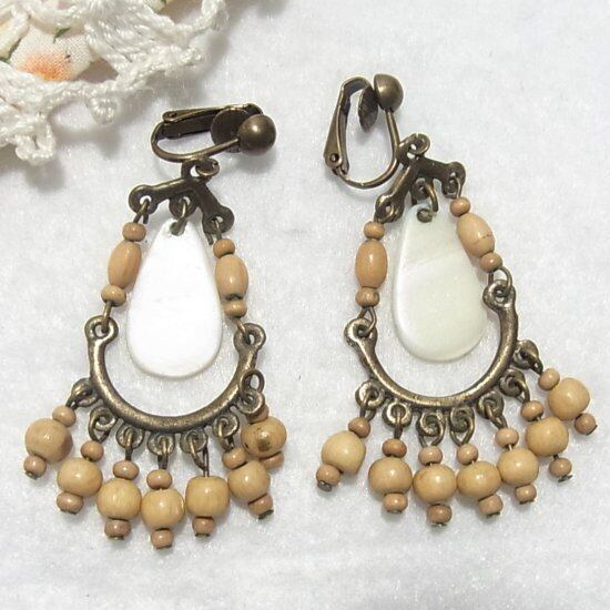 ベージュのビーズが下がるイヤリング コスチュームジュエリーのセール通販 7990E