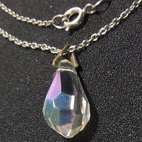 クリアガラスのティアドロップペンダントネックレス ヴィンテージネックレスのセール通販 10588N
