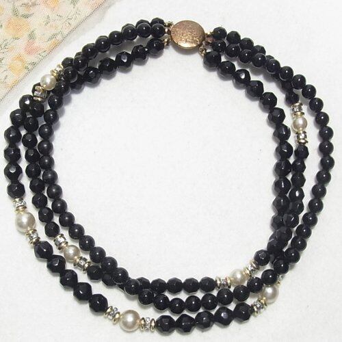 黑いビーズ製3連ネックレス ヴィンテージネックレスのセール通販 10604N
