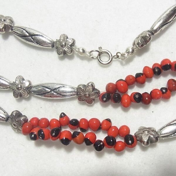 赤・シルバープラスティックビーズのロングネックレス アクセサリーのセール通販 10647N