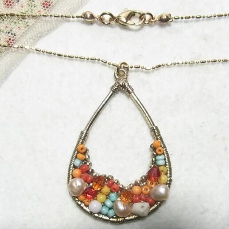 カラフル涙型のペンダントネックレス ヴィンテージネックレスのセール通販 10667N
