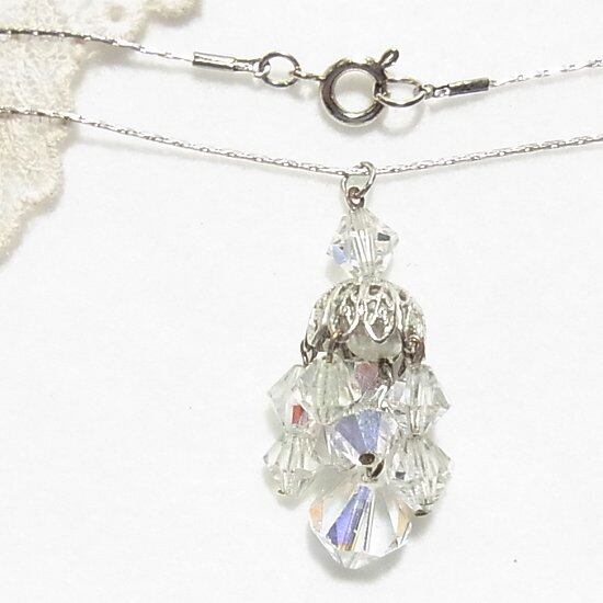 クリアガラスビーズのタッセルペンダントネックレス ヴィンテージネックレスのセール通販 10674N