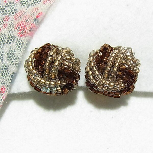 茶と薄茶のガラスビーズ製イヤリング コスチュームジュエリーのセール通販 10702E