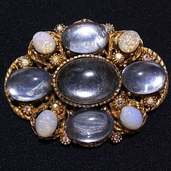 凝った細工のオーバルブローチ ヴィンテージブローチのセール通販 10723B