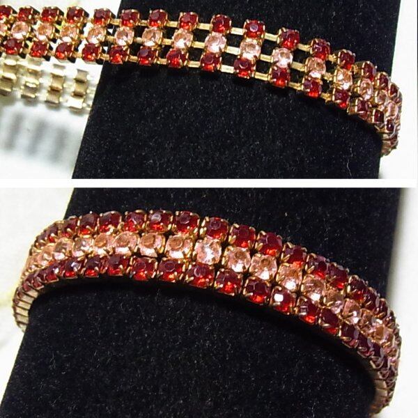 赤、ピンク、ラインストーンのストレッチブレスレット コスチュームジュエリーのセール通販 10728BR