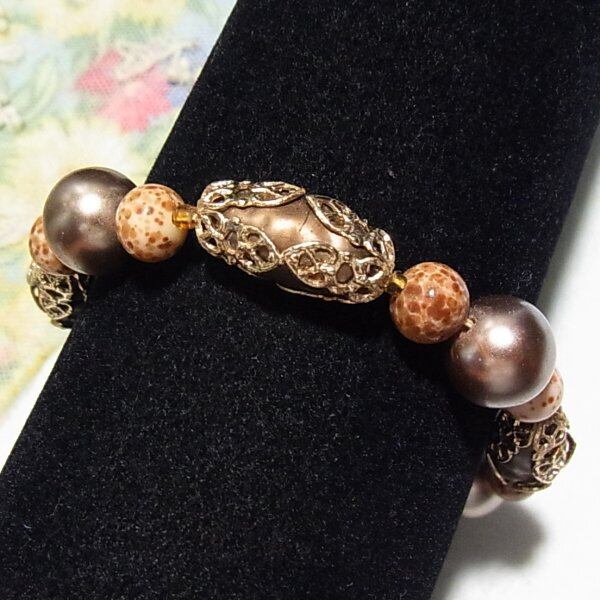 JAPAN 薄茶色のビーズ製ブレスレット ヴィンテージブレスレットのセール通販 10780BR