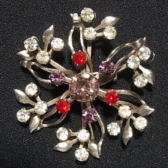 ラインストーンのフラワーブローチ ヴィンテージブローチのセール通販 9306B