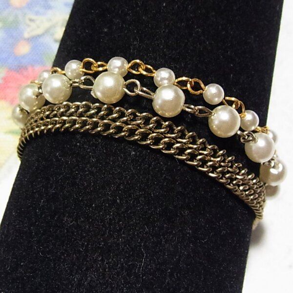 パール風ビーズとチェーンの4連ブレスレット ヴィンテージブレスレットのセール通販 10818BR