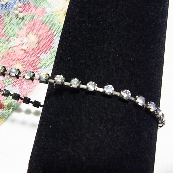 ●2000’s ●ラインストーンのストレッチブレスレット オーロラクリアのラインストーン(爪留め) 黑いメタル製 ゴムひもでストレッチします きれいです ◆年代は当店の推定です。