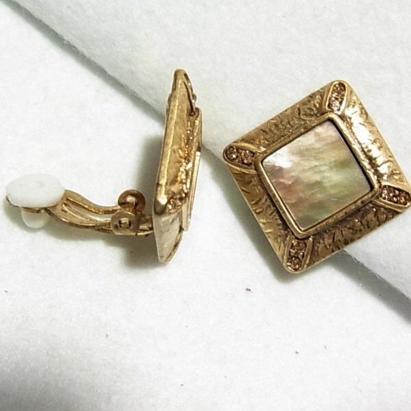 ●2000’s ●クリップ式イヤリング ●天然貝の石の四角いイヤリング ゴールドトーンのメタル台 スタイリッシュでオシャレ きれいなオールドストック新品 ◆年代は当店の推定です。