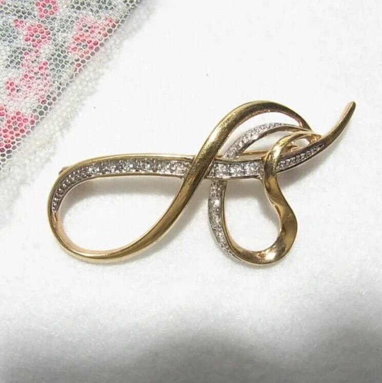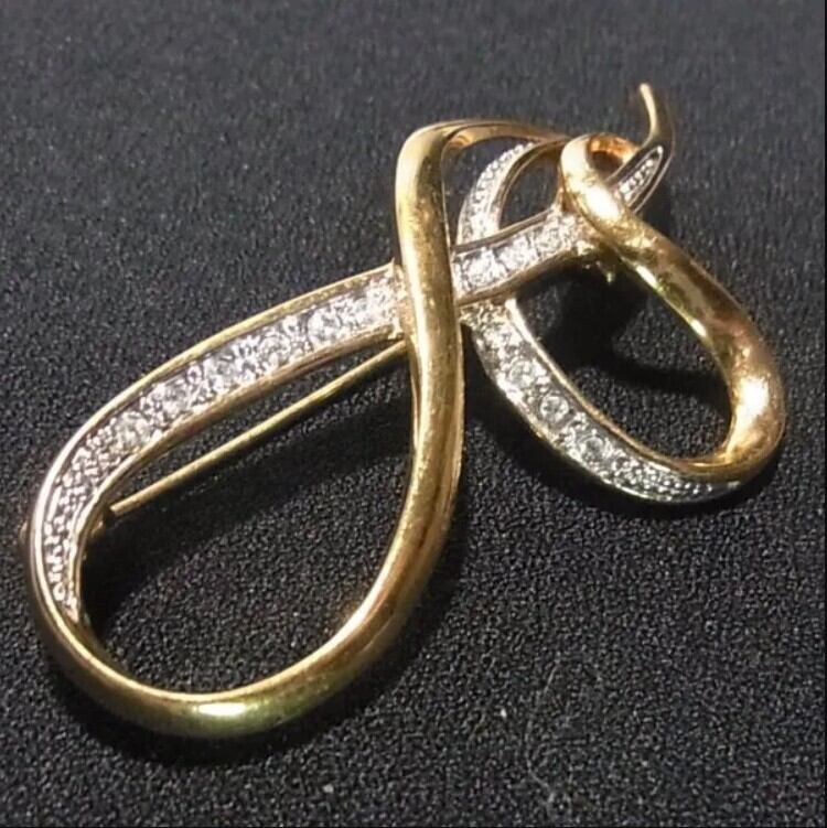 ●2000’s ●流れる曲線デザインのブローチ クリアラインストーン ゴールドトーンのメタル製 スタイリッシュでオシャレなアイテムです ◆年代は当店の推定です。