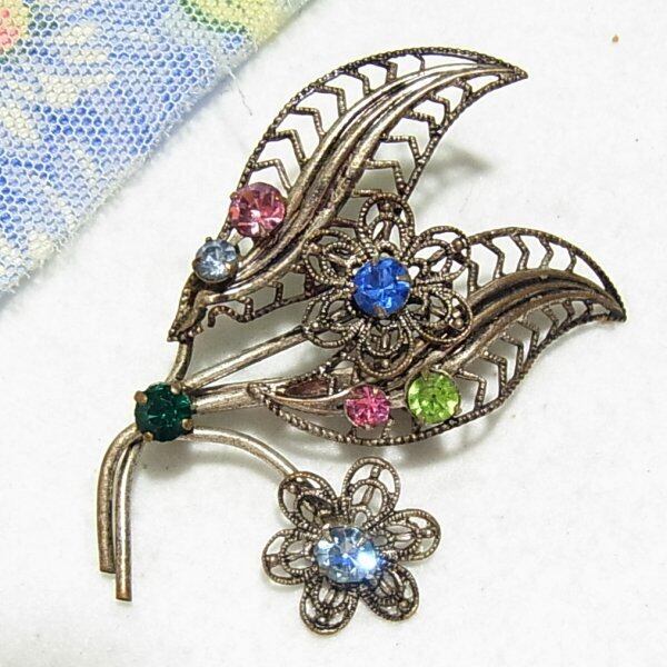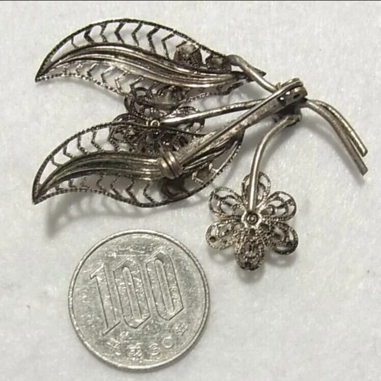 フィリグリー(透かし)デザインのフラワーブローチ ヴィンテージブローチのセール通販 10853B