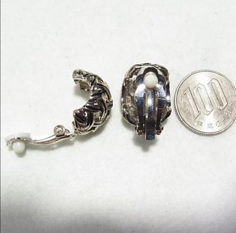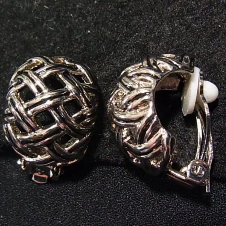 ●オールドストック新品 ●クリップイヤリング ●格子デザインの幅広フープイヤリング シルバートーンのメタル製 気品あるオシャレなアイテムです