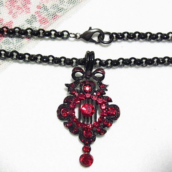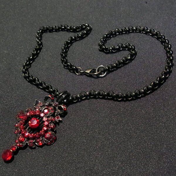 黒チェーンに赤いラインストーンペンダントのネックレス コスチュームジュエリーのセール通販 10880N