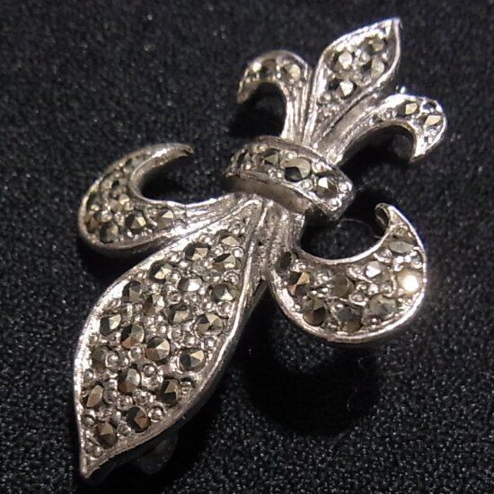 マーカサイトが埋まった百合の紋章デザインのブローチ ヴィンテージブローチのセール通販 9813B