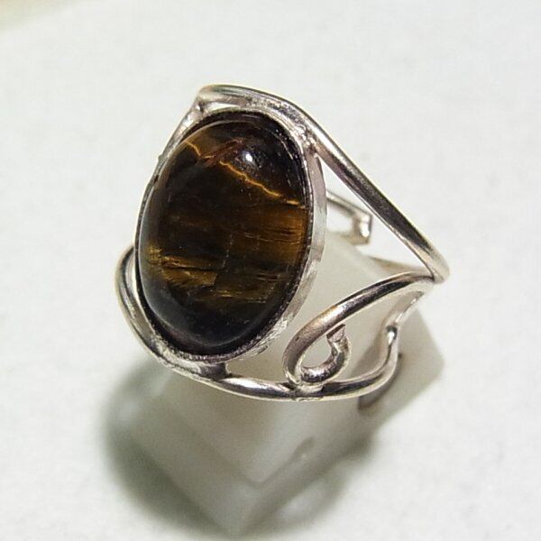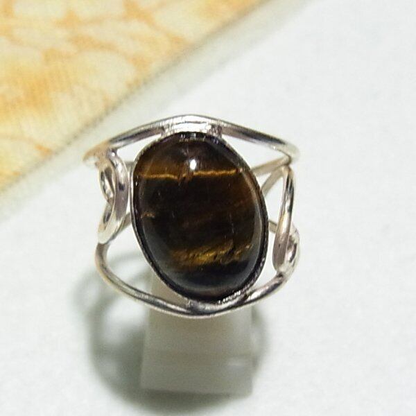 ●新品 ●タイガーアイ(トラ目石))のリング シルバートーンのメタル台 石の大きさ: 1 x 1.3cm ●サイズ:フリー(アジャスタブル)
