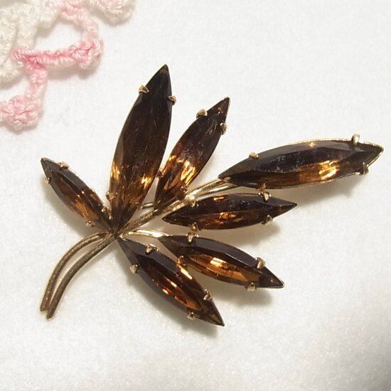 ブラウンラインストーンのフラワーブローチ ヴィンテージアクセサリーのセール通販 10386B