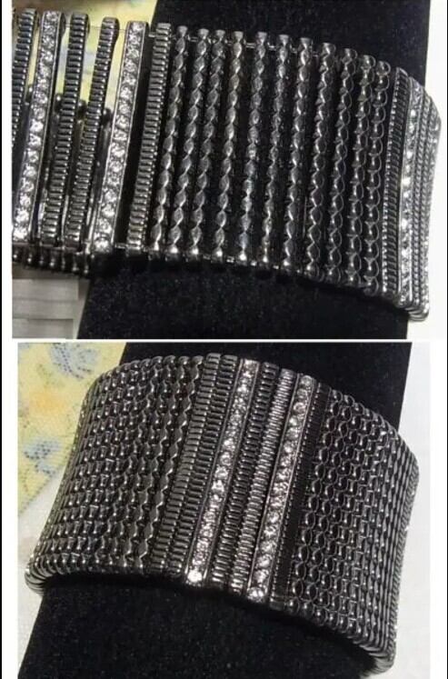 幅広黒メタルのストレッチブレスレット コスチュームジュエリーのセール通販 10954BR
