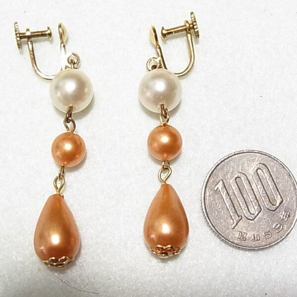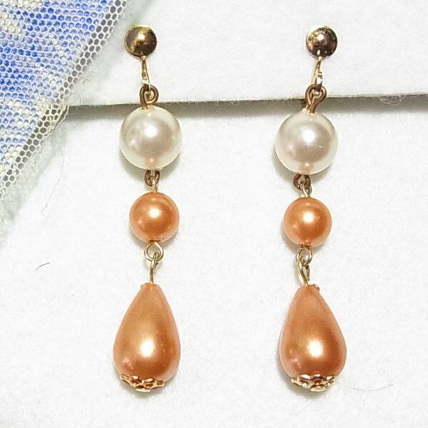 薄茶色ビーズの下がるイヤリング ヴィンテージイヤリングのセール通販 10964E