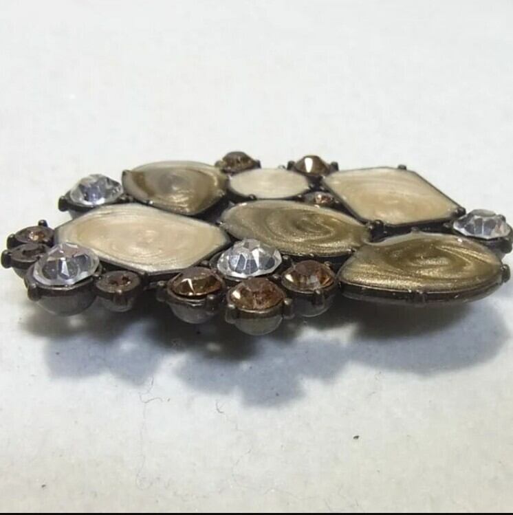 ●ブラウン基調のラインストーンとエナメルのブローチ