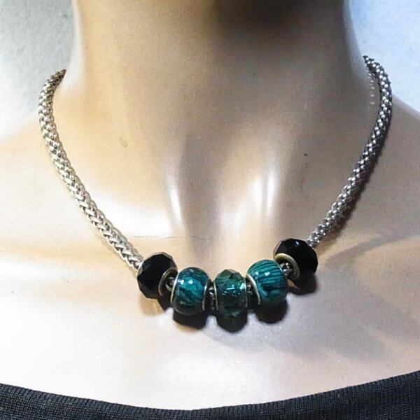 ●チェーンにグリーンのガラスビーズが通るネックレス