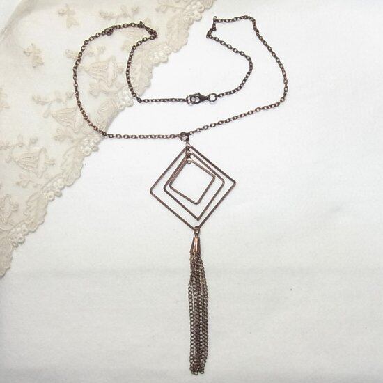 ●オールドストック新品 ●銅製タッセルペンダントネックレス 60cmチェーン ペンダント部分が17cm 深みのあるシックな色合いです ★送料は一律250円、4000円以上お買い上げで無料です。