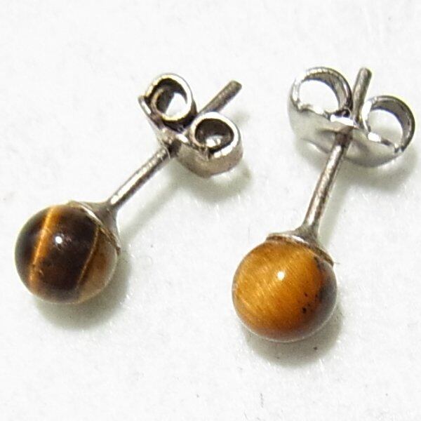 ●新品 ●タイガーアイのボールのスタッドピアス 直径5mmのボール シルバートーンのメタル金具 アレルギー対応はしておりません