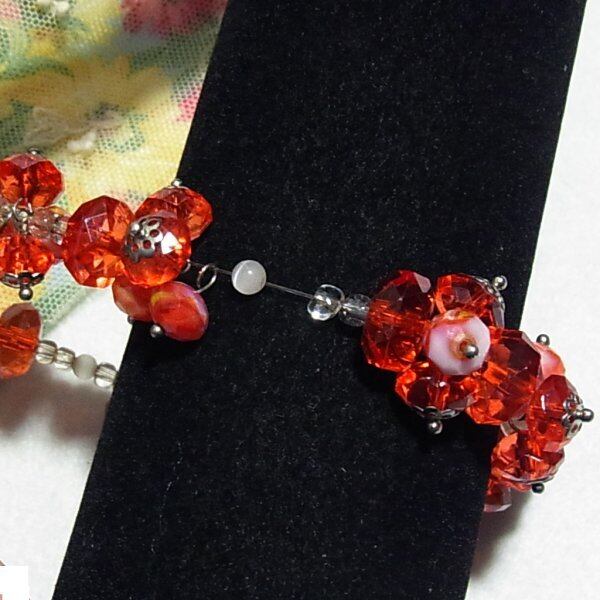 ●オールドストック新品 ●赤いプラスティックとガラスビーズのストレッチブレスレット ゴムひもでストレッチします キュートな良いムード、きれいです